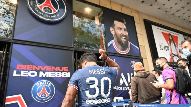 Harga tiket di Stade Francis-Le Ble pun ikutan melonjak. Lionel Messi berpose dengan kostum Paris Saint-Germain.